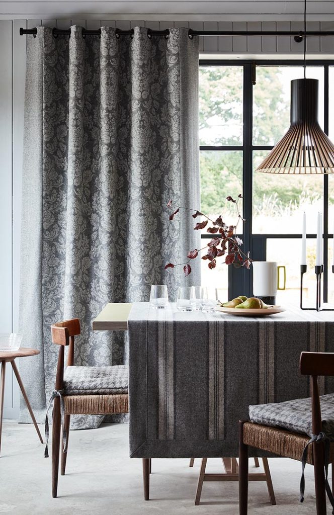Natural fibre fabrics designed and woven in England.